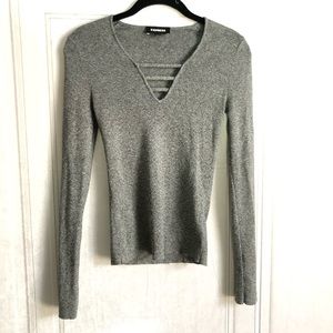 Stretchy long sleeve ribbed sweater with strapped v neck. Excellent condition. Size S.