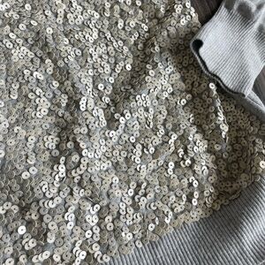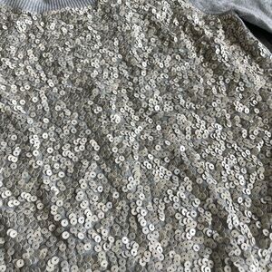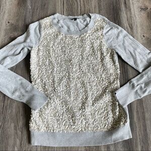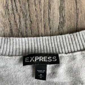 Express Grey sweater with white sequin front, size medium. I’m good used condition. Fitted crewneck.
