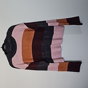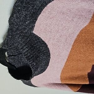 Gorgeous fall sweater. Long sleeves that flare at the wrist. Stretchy and fuzzy fabric. Mock neck. Pink, gray, orange and burgundy colors. Preppy academia, downtown girl, boho, comfy, moody, casual, earthtones, brunch, hang out, weekend, school, fall