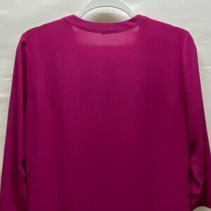 Express Half Zip Blouse Women's Medium Magenta Pink Loose Fit 3/4 Sleeve Tunic