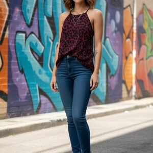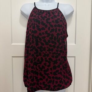 Express Halter Bubble-Hem Cami Red/Black Animal Print M