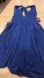 Stunning blue halter dress with lace-up sides and pleated skirt. Perfect for any occasion.