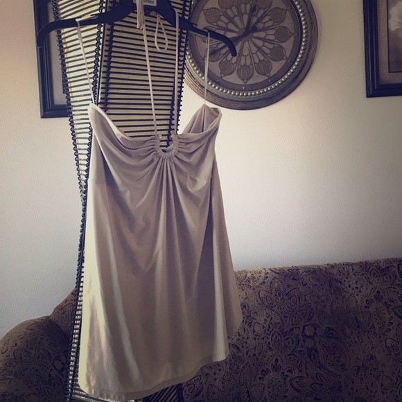 Cute Gold/beige Express halter top. Fair condition. One spot of snagged fabric. Refers to photos.
