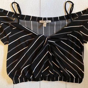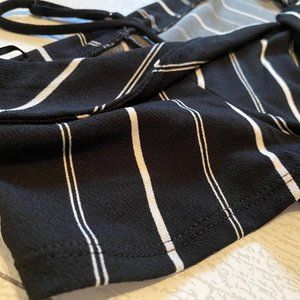 Black with stripes halter top. You can pair it with some jeans, culottes, shorts, sandals, or heels.