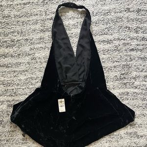 NWT Express Black Velvet Waisted Halter Top Size: 2
