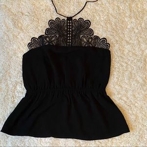 Express Halter top Black with cool design on front Peplum Size XS Pre-owned, great condition Smoke-free home