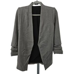 Express Herringbone Open Blazer Ruched Sleeve XS Gray Office Contemporary