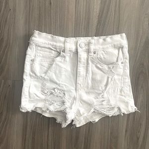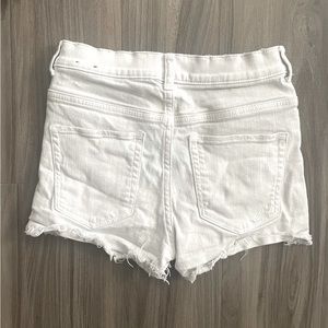 White distressed hi rise shorts! Size 0. Super cute and comfy for summer. 98% cotton. Stretchy!
