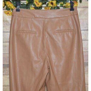 Express High Rise Ankle Pants Size 6S Petite Brown Tan Faux Leather Straight