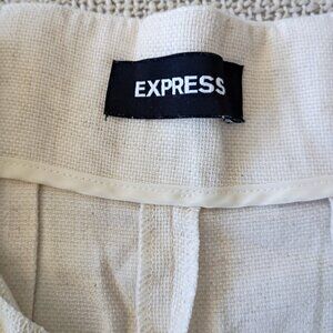 Minimalist and chic, these Express high-rise bermuda shorts feature a structured silhouette with button-front detail and a breezy linen-blend fabric โ perfect for warm days or elevated casual looks.