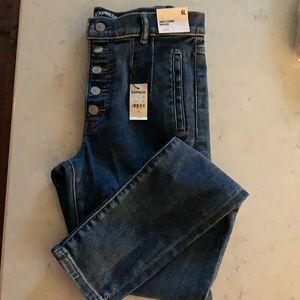 Express High Rise Button Fly Jean. New with Tags. Never worn. Size 6L. 30” inseam. Dark wash.