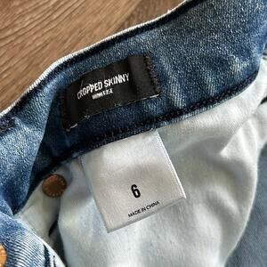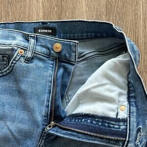Express High Rise Cropped Skinny Jeans Medium Wash Size 6 Distressed Raw Hem