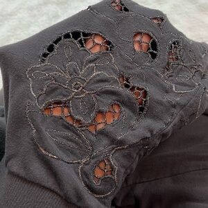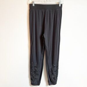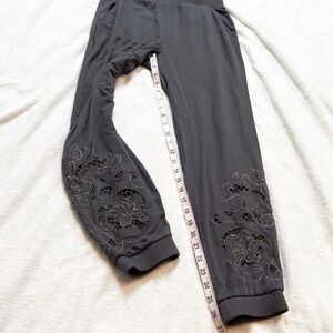 Express High Rise Floral Embroidered Joggers Pants Solid Gray Pockets XS