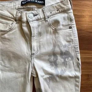 Bleached Express ultimate stretch legging high rise jeans. Size 00. Color: Bleached. These jeans have been bleached and gently worn. They have a bit of a fun vintage vibe to them. I bleached them for an 80s themed party, turned out super cute, and these jeans were only worn that one time. Very stretchy and comfortable jeans. Great condition! Smoke free home. Crossposted on Ⓜ️.