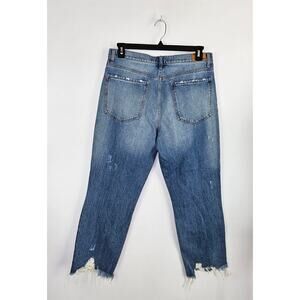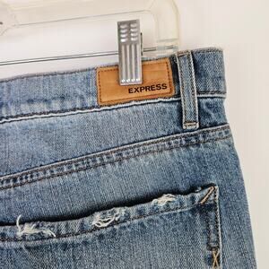 Express High Rise Straight Ankle Jeans Siz10 Light Wash Distressed Stretch Denim