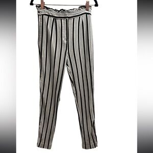 Express High Rise Striped Ankle Pants Size 2 Black White Vertical Stripe