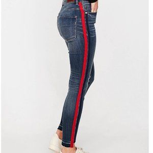 Express High Waist Red Stripe Stretch Distressed Jeans 8