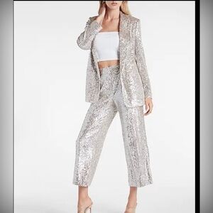 Express High Waist Sequin Pleated Cropped Trousers SZ XS