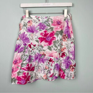Express High Waisted Floral Asymmetrical Ruffle Mini Skirt