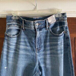 These medium wash hyper sculpt jeans are created with the most flattering compression denim for the most comfortable and confident fit and will retain their shape wear after wear. Form fitting through the hips and thighs and an easy flare from the knees down, these jeans put a modern spin on a retro fit. These are great in the fall with a bootie or in the summer with a platform heel. I loved them but they were a little too snug for me.
