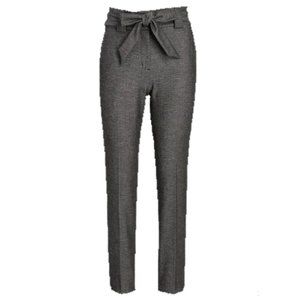 Tags Career Work Professional Seminar Casual Paperbag Hi Rise High Waist Waisted Sash Self Tie Belt Date Dress Dressy Ankle Pant Pants Spring Summer Grey Gray Black White Straight Slim Tapered Trousers
