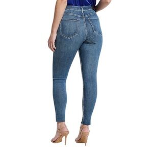 Express - High Waisted Medium Wash Raw Hem Skinny Jeans Sz 8L