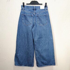 FEATURES/ACCENTS: Medium Wash Wide leg, Cropped length denim. 100% non stretch cotton. High waist, Zip front with ripped distressing on legs. 5 pocket design.