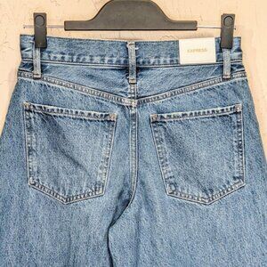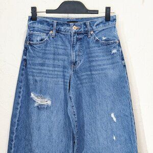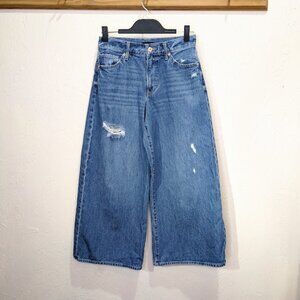 Express High Waisted Medium Wash Ripped Wide Leg Ankle Jeans Size 6 R