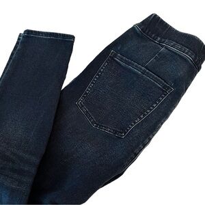 These pull on jeans are NWT. They are a size M, listed as a 6/8/10. Soft denim with great stretch and recovery. High waist. Distressed with ripped knee.
