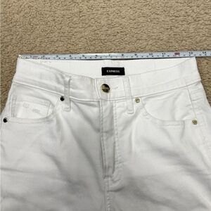 Express High Waisted White Ripped Straight Ankle Jeans Sz 2 R EUC
