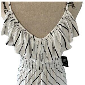 Express High-Low Ruffle Knit Dress Striped White Black Size S Petite