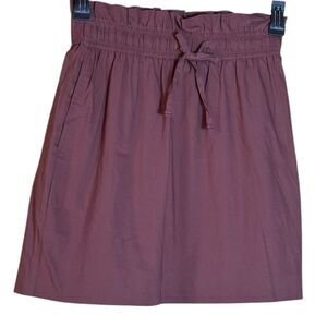 This vibrant plum mini skirt from Express features a smocked design with a charming tie front, perfect for casual outings or a day at work. Its lightweight fabric and mini length offer a comfortable and stylish fit, making it a versatile addition to your wardrobe.