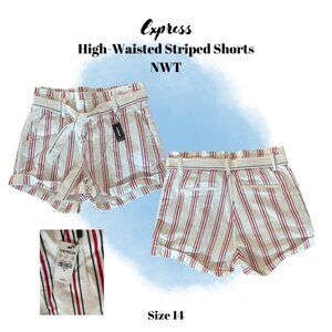 Red White & Blue High-Waisted Paper Bag shorts from Express! With Tags!