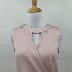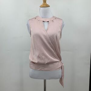 Express Highneck Wrap Satin Blouse Womens XS Extra Small Ballet Pink Keyhole