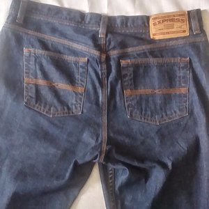 Express Hipster Flare Denim Jeans Size 11/12. These jeans have been altered to fit a petite. No longer a tall size. 27" length. Good used condition. 100% cotton no stretch.