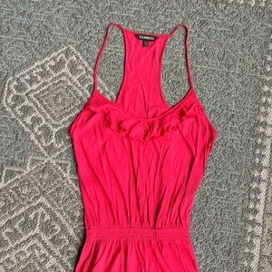 Size S ruffle neckline, racerback cinched elastic waist 60% cotton 40% modal