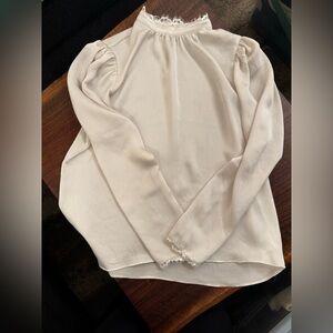 Chic ivory blouse with lace accents. Perfect for any occasion.