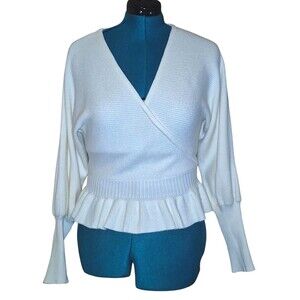 Express Ivory Puff Sleeve Peplum Ballet Core Off Shoulder Ribbed Sweater Medium