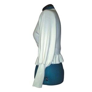 Express Ivory Puff Sleeve Peplum Ballet Core Off Shoulder Ribbed Sweater Medium