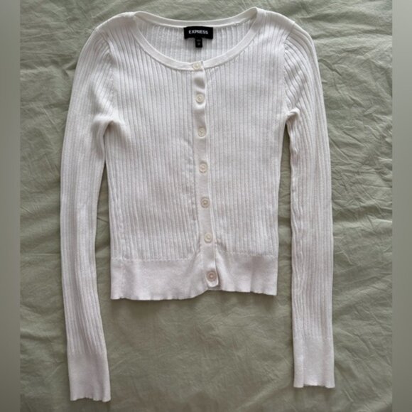 -Express ivory cream ribbed cardigan -size small but fits like an xs -buttons up