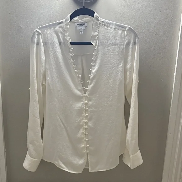 Express Ivory Ruffle Button Blouse