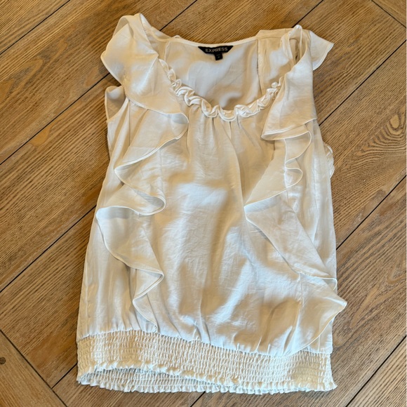 Chic ivory top with stylish ruffles. Ideal for versatile styling. In excellent condition.