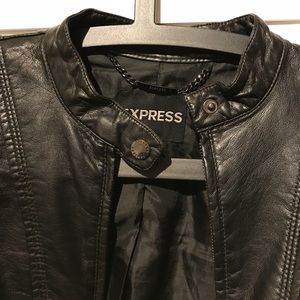 Black leather jacket, great for a night out! Unfortunately the back is peeling (as noted in the last picture).