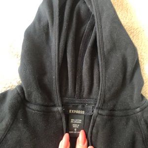 Made out of like a thin sweatshirt material. GUC, size small. Has hood and pockets.