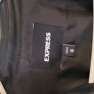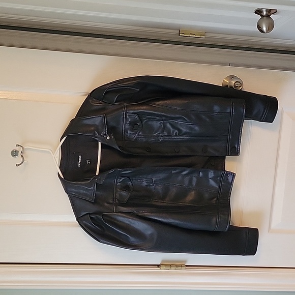 Like new Express leather-look, button-down jacket with slightly puffed sleeves. 100% polyester, fully lined. Excellent condition- no rips, tears, stains or peeling. Lightweight.