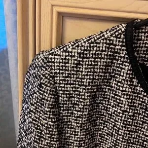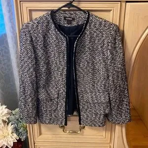 Express Tweed Jacket, Tweed Material Career Work Office Suit Jacket. No zipper or button front, made to be open. Black and white size 4. Functioning pockets and 3/4 sleeves. Satin lining throughout.