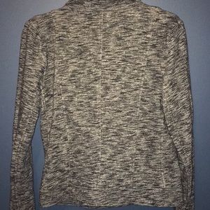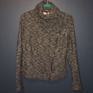 This jacket is so chic and comfy (100% cotton). It can be worn multiple ways, looks great worn open or zipped. Has snaps at the bottom & top for a beautiful fitted look. NWT