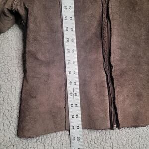 Express Jacket Women Small Brown Suede Leather Sherpa Lined Zip Stand Collar 90s