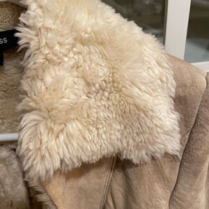 Express Jacket Women’s 1/2 Coat Suede Tan Shearling Bomber Mob Wife Aesthetic