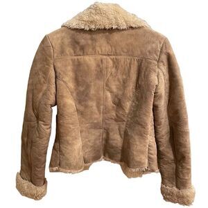 Express Jacket Women’s 1/2 Coat Suede Tan Shearling Bomber Mob Wife Aesthetic